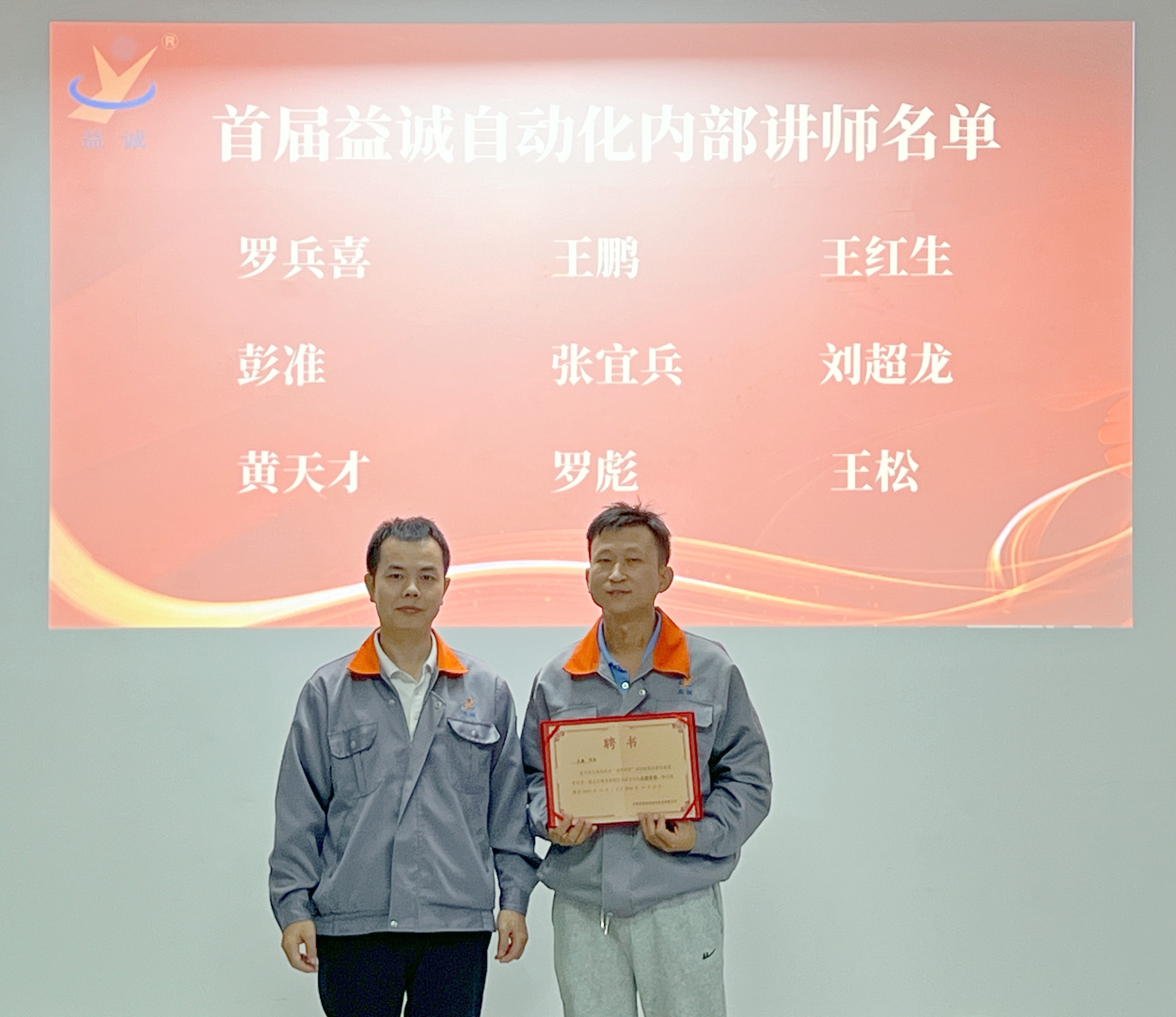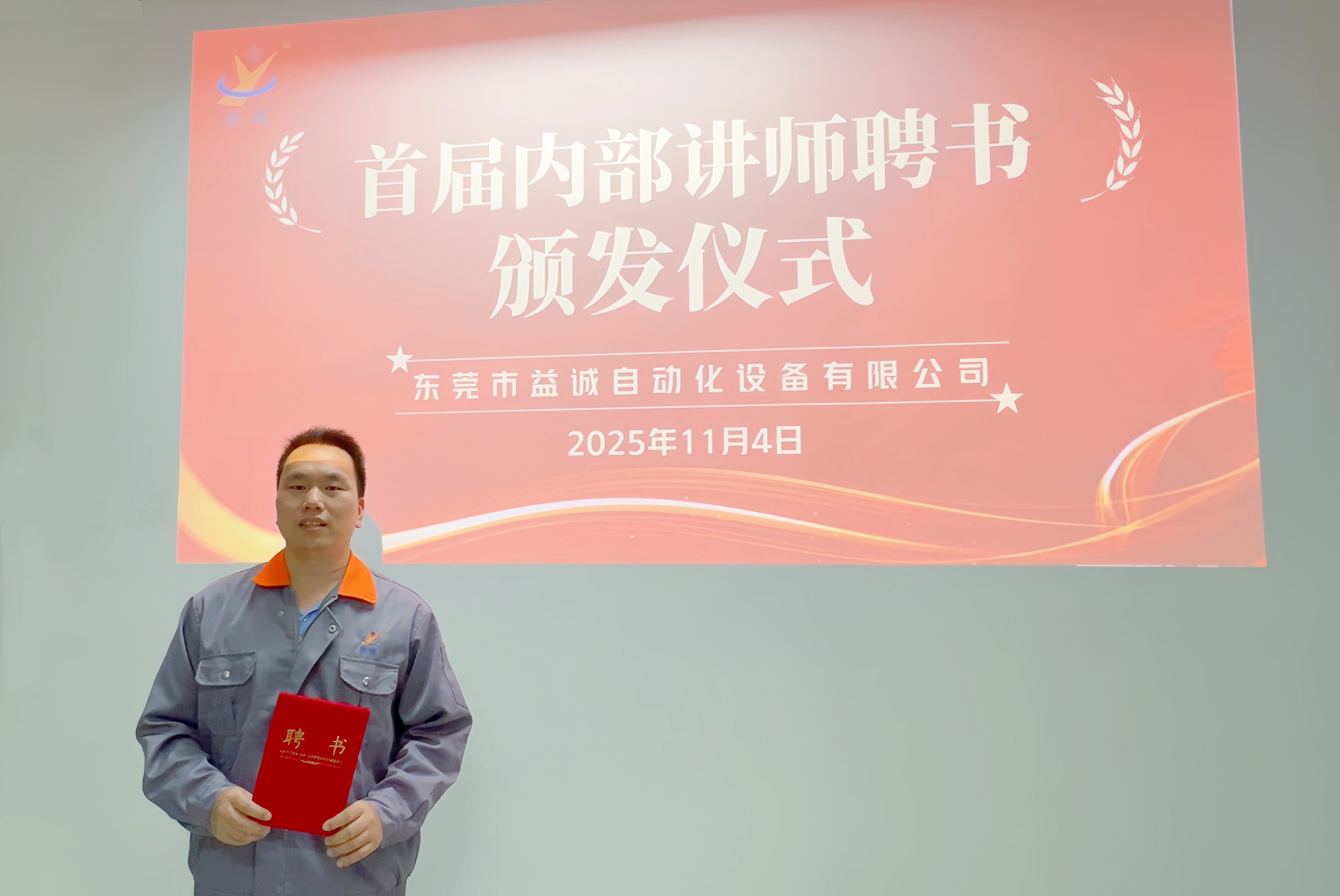 益誠自動化總經(jīng)理潘總親自為首批內(nèi)部講師頒發(fā)聘書,潘總勉勵大家:“這張聘書承載的不僅是榮譽與信任,更是責任與期待,希望大家成為公司智慧傳遞的橋梁,在教與學中激發(fā)思考,在傳與承中凝聚力量,為公司高質(zhì)量發(fā)展持續(xù)注入人才動能。”
