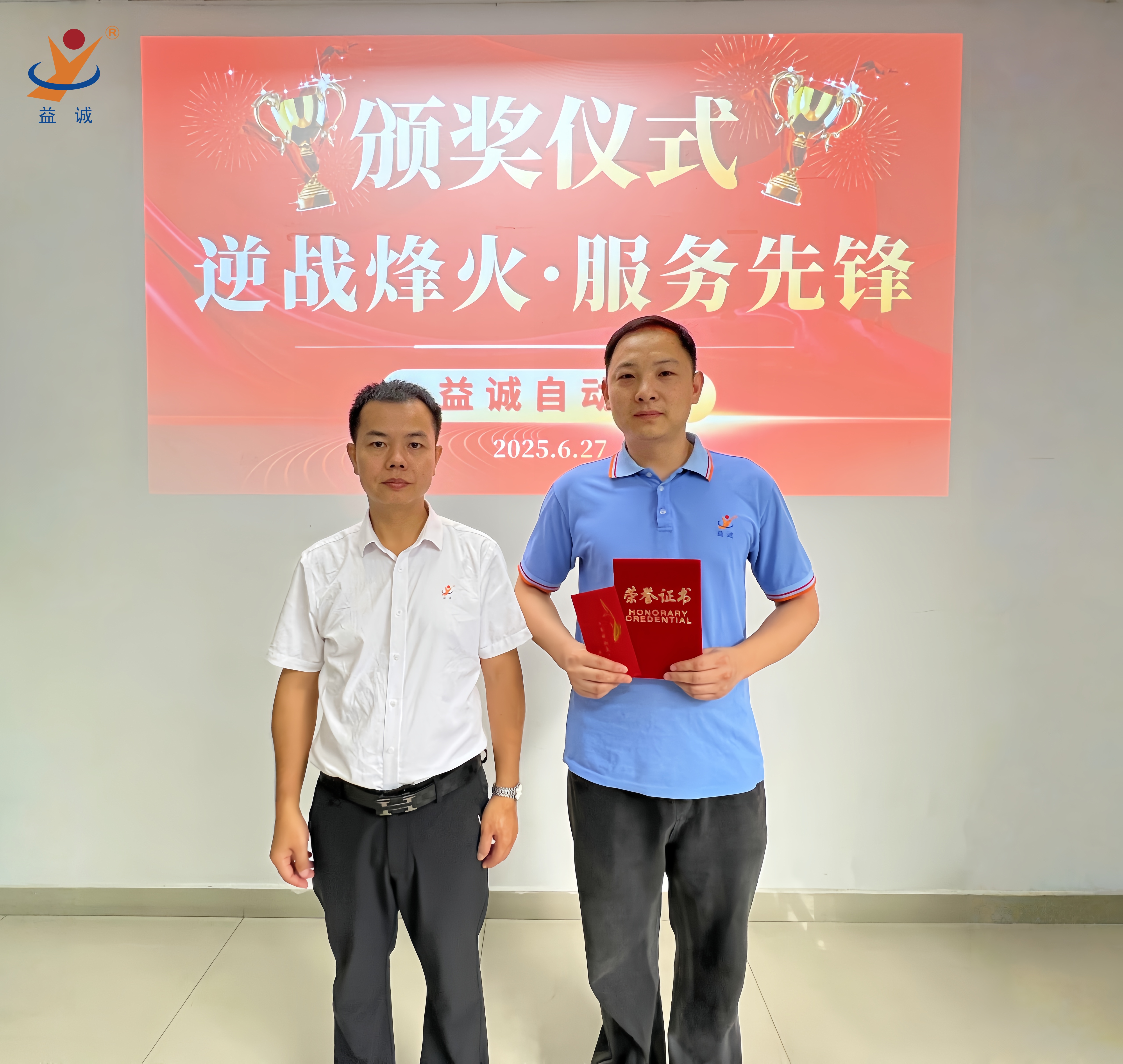 潘總經(jīng)理表示:“你們穿越戰(zhàn)火的身影,正是益誠人服務(wù)精神的最好詮釋!你們用行動(dòng)詮釋了益誠自動(dòng)化的服務(wù)精神—客戶至上、使命必達(dá),用專業(yè)與勇氣寫下了益誠跨國服務(wù)的非凡篇章。我相信,在優(yōu)秀益誠人的共同努力下,益誠在全球化服務(wù)的征程將再創(chuàng)輝煌!"
